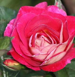 Flowers red with white reverse, 25 petals, 7-8 cm, borne in small clusters; slight fragrance; upright, compact, height 32 in (80 cm). Recurrent